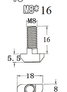 Tornillo Cabeza T, M8 x 16 mm, para montajes en perfiles de aluminio 40mm (2 piezas)