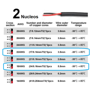 | Calibre de Cable | 18 AWG, 22 AWG |